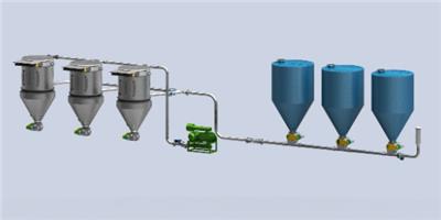 正壓稀相氣力輸送系統,三通換向閥,格柵除鐵器,旋轉閥,金屬探測器,除塵器,旋風分離器,強磁分離機,倉泵氣力輸送系統,真空輸送,投料站
